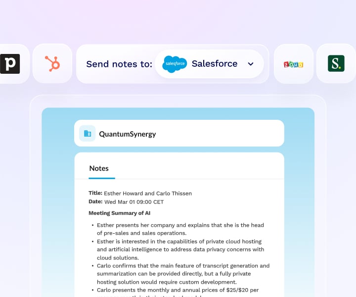 Schluss mit manuellen Aktualisierungen. Dieser KI-Transkriptor übernimmt auch CRM und Nachbearbeitung