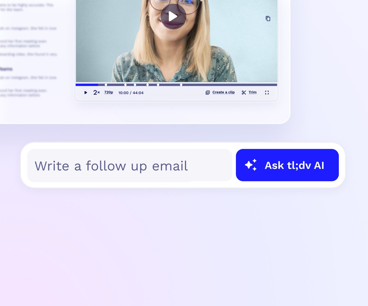 Die KI von tl;dv erfasst Ihre Meeting-Notizen in 30 Sprachen, aktualisiert Ihr CRM automatisch, entwirft Ihre nächste E-Mail zur Nachbearbeitung und sendet KI-generierte Zusammenfassungen der letzten 20 Meetings, Erwähnungen zu Funktionen und Wettbewerbern direkt in Ihren Posteingang. Wenn Sie wollen, jede Woche. Das ist verständlich, aber erst der Anfang.