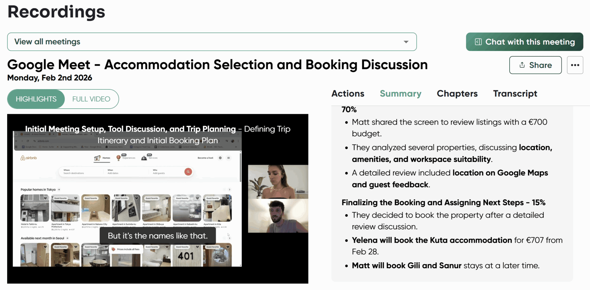 その問題を解決するために、会議のリンクをSpinach AIに貼り付けました。幸いなことに、これはすぐに見つかりました。