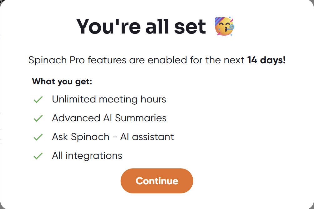 Spinachからは、14日間の無料Proトライアルも提供されました。